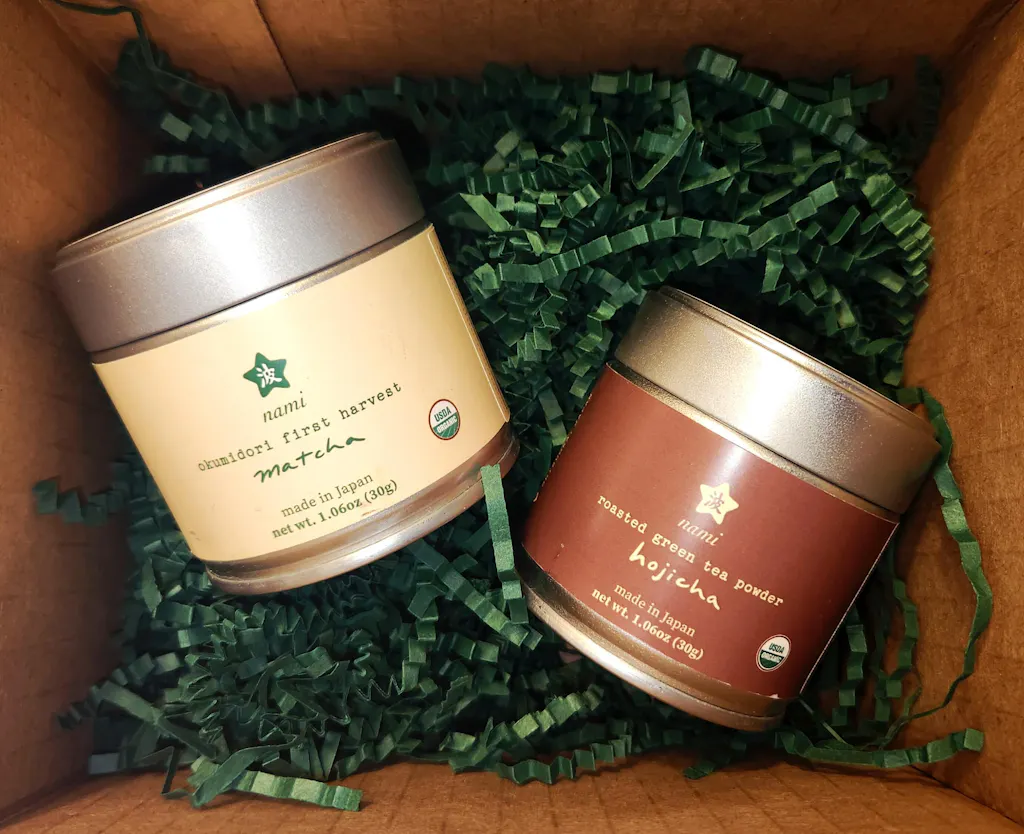 A perfect gift or personal treat, Nami's Matcha & Hojicha duo includes two Nami staples: aromatic, vibrant matcha and nutty, roasted hojicha. Our matcha is made from premium shade-grown leaves, perfect for everything from traditional tea to lattes, while our hojicha has a mellow, nutty taste with low caffeine, making it great for unwinding. Together, they’re the dynamic duo of tea—one’s your go-to for a morning pick-me-up, the other for a comforting treat <3